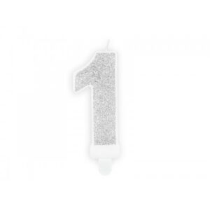 Vela número 1 en purpurina plata – Partydeco