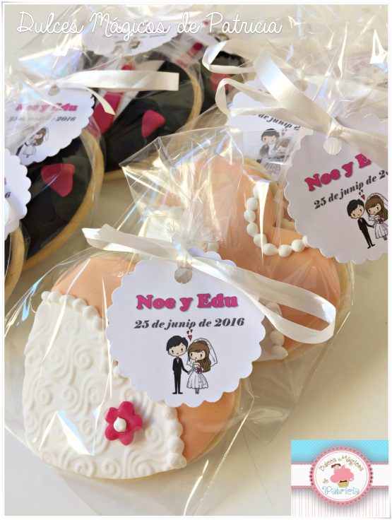 Aquí puedes ver una recopilación de fotos de galletas de boda, puedes elegir los tuyos a tu gusto, basándote en algunos de los que veas aquí, o en un diseño totalmente personalizado.