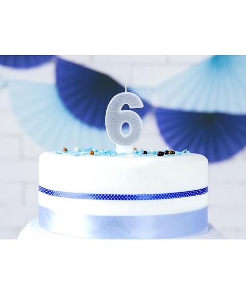 Vela número 6 en purpurina plata – Partydeco